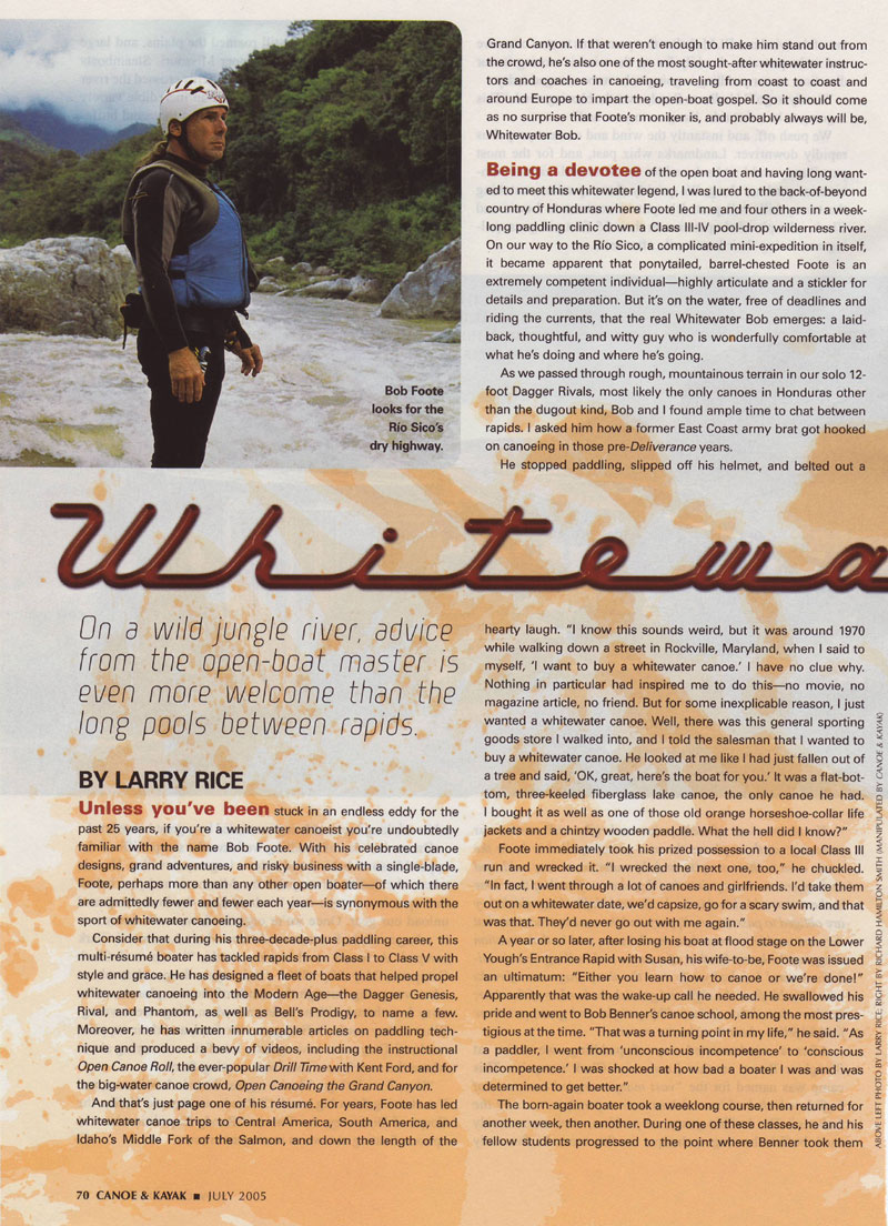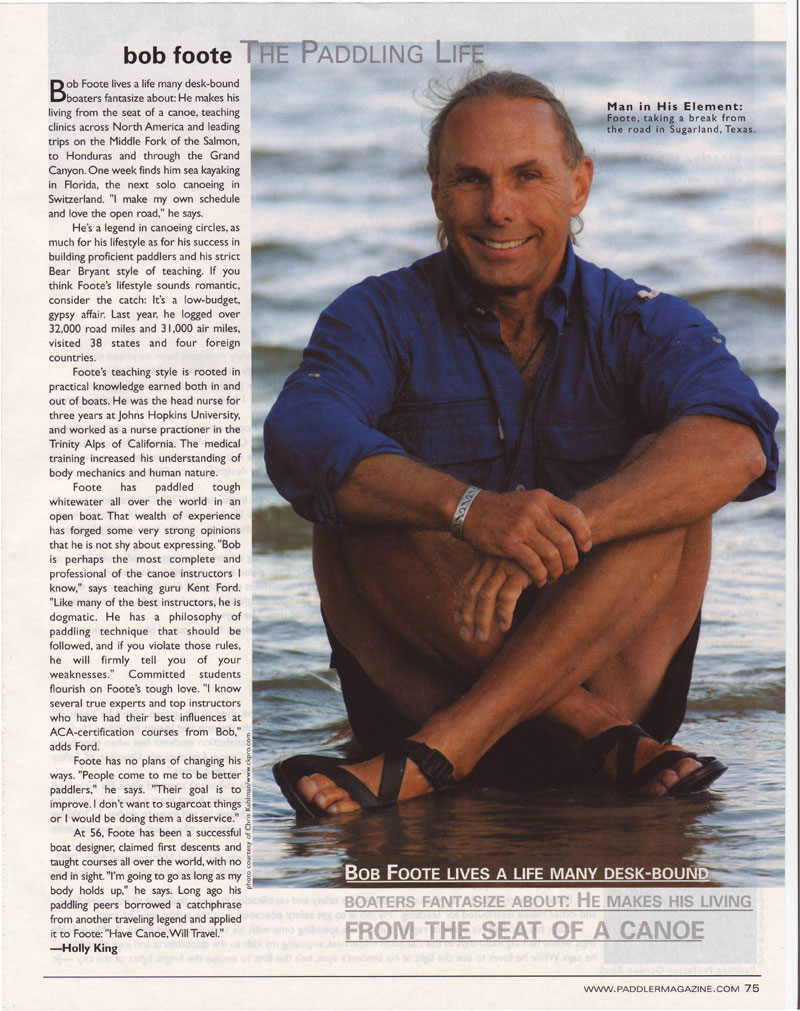 Bob Foote is one of the premiere open boaters in this country. Perhaps one of a very select few, Bob has realized his life-long goal, and spends his days traveling around the United States, Canada, and South America, teaching paddling and leading trips down some of the world’s most challenging rivers. Not bad for the former Emergency Room Nurse and Nurse Practitioner.