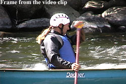 The trick is to use a series of quick and short (I like to call them micro strokes) forward, pry, and draw strokes all linked together to keep constant pressure on the blade. This allows you to control the position of the boat. If you lift the paddle out of the water to do a recovery stroke, the current will take control and you'll lose your positioning and alignment. The key point is to learn how and when to adjust the blade angle and position in relationship to the pivot point. The effect of a micro stroke done in front of the pivot point will be quite different from doing it behind. A bit of blade angle will also produce a different result from having the blade perfectly perpendicular to the keel line. On the video clip, I exaggerated fiddle widdle in a moving eddy where I wanted slide forward and to my right. The goal was not to be sucked forward by the pull of the eddy but rather to move into position under control. In real-world conditions, fiddle widdle is even more subtle and fine-tuned. Notice how the paddle stays in the water until I'm ready to complete the move. To practice, get into an eddy and then pick a mark, let's say 2' back from a rock on the right side of the eddy line. Slowly inch yourself up to that mark. Now do the same thing, inching yourself up to a mark 3' from the rock, then try 1'. Repeat the drill on the left eddy line (don't switch paddling sides to do this). Concentrate on making the move smooth and deliberate. Avoid jerky motions and letting your bow swing back and forth. You can also use fiddle widdle while going down steam to micro adjust your position. Use the same principals of leaving your paddle in the water and adjusting the blade angle. So get out there and give it a try! I think you'll be surprised by the increased control and greater percentage of successful moves.